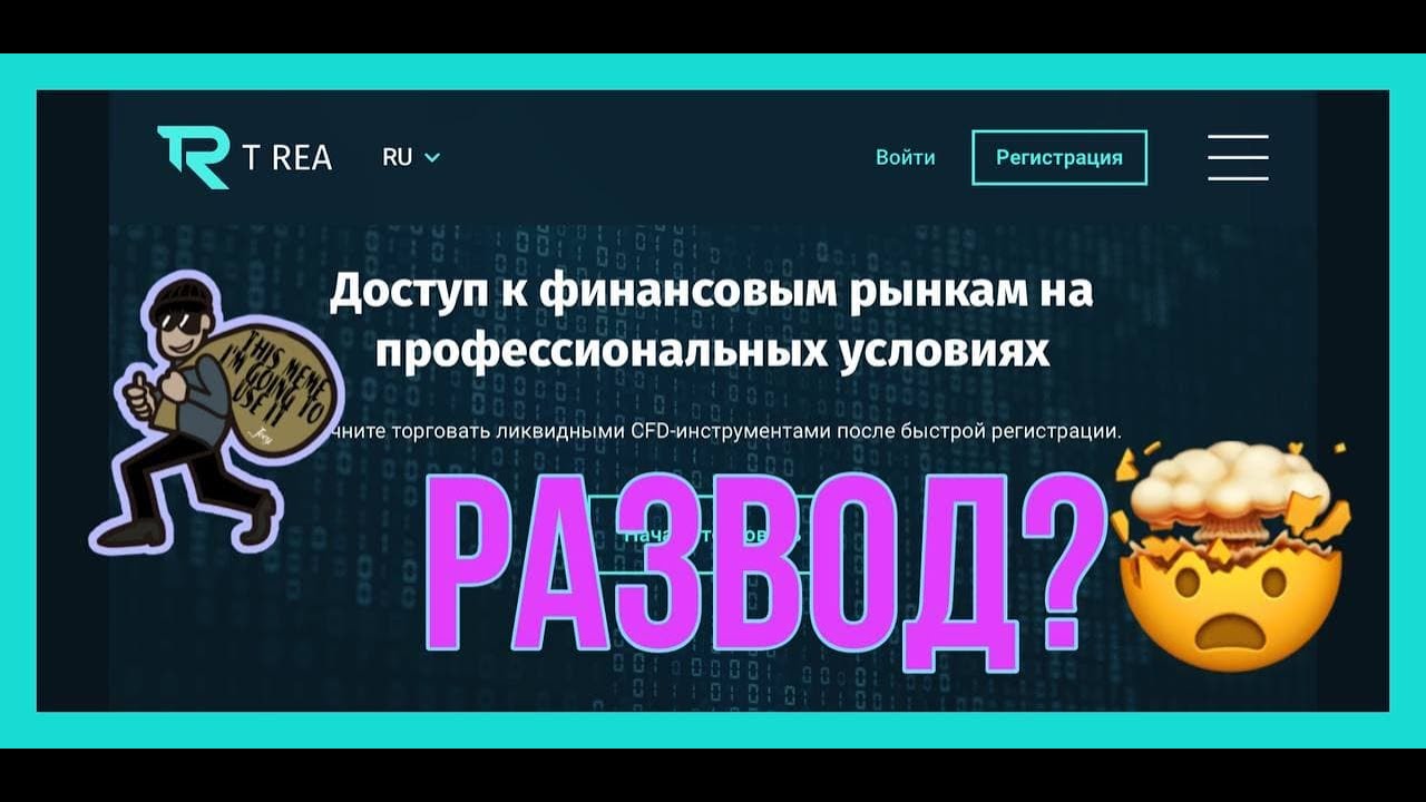 В видео рассказывается о сайте t-rea.com. На первый взгляд может показаться что брокер достаточно надежный и не предвещает беды. Но на самом деле брокер t rea лохотрон и мошенник и доверять ему не стоит. Все признаки того что t-rea не выводит деньги показаны на видео!