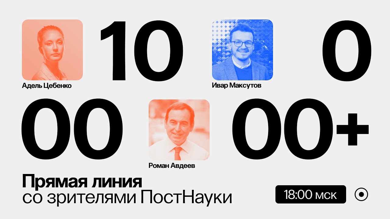 ПостНаука преодолела миллионный рубеж на YouTube. В честь этого мы приглашаем на беседу в прямом эфире вас, наших главных зрителей! Поговорим о будущем ПостНауки, ответим на все ваши вопросы, увидим наших любимых ученых и отлично проведем время, подключайтесь!